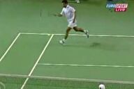 Jeden z nejstarších hráčů na okruhu ATP Fabrice Santoro je častým účastníkem výměn, které si lidé ještě dlouho připomínají. K nim patří i tato s Davidem Nalbandianem, v níž Francouz zaútočí z Nalbandianova druhého podání a následný volej se mu vrátí na jeho stranu kurtu...